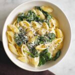 This Pasta with Spinach Recipe is best enjoyed soon after cooking, but you can freeze leftovers if necessary. Place the cooled pasta in a freezer-safe container and consume within a month for best taste. Be aware the texture of the spinach may soften after freezing and reheating.