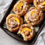 Indulge in the irresistible fusion of fruity peach cobbler and classic cinnamon rolls with this Peach Cobbler Cinnamon Rolls recipe. Soft, buttery cinnamon rolls are filled with sweet cinnamon-sugar, fresh peaches, and baked to golden perfection. Topped with a luscious vanilla glaze, these rolls are perfect for brunch or a comforting dessert treat.