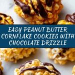 These Peanut Butter Cornflake Cookies are crispy, sweet, and easy to make with just a few pantry staples. Combining crunchy cornflakes coated in a smooth peanut butter and corn syrup mixture, then topped with a delicate drizzle of melted chocolate, these no-bake cookies are perfect for a quick, nostalgic treat that requires no oven baking and minimal prep time.