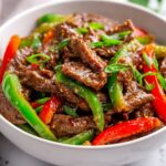 A quick and flavorful Pepper Steak Stir Fry featuring tender flank steak and vibrant bell peppers cooked in a savory garlic-ginger soy sauce. Ready in just 30 minutes, this dish is perfect for a satisfying weeknight dinner served over steamed rice or noodles.