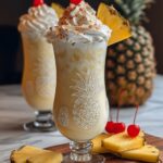 Pour the silky milkshake carefully into your chilled glasses, filling nearly to the rim. If you’re feeling fancy, top with whipped cream, add a maraschino cherry, and perch a fresh pineapple wedge on the rim. These simple touches make it feel like a vacation in a glass.