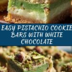 These Pistachio Dream Cookie Bars feature a buttery cookie base studded with chopped pistachios and white chocolate chips, topped with a smooth, rich pistachio layer and garnished with additional pistachios and white chocolate. Perfectly balanced in sweetness and nutty flavor, these bars are a delightful treat for any occasion.