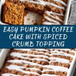 This Pumpkin Coffee Cake is a moist and tender autumn treat featuring a spiced pumpkin batter topped with a buttery cinnamon crumb topping and finished with a luscious pumpkin spice glaze. Perfect for breakfast, brunch, or an afternoon snack with your favorite cup of coffee.