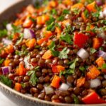 A refreshing and nutritious Mediterranean quinoa and lentil salad, packed with colorful vegetables, fresh herbs, and a tangy lemon dressing. This vegetarian and gluten-free dish is perfect for a healthy lunch or light dinner, offering a delightful balance of textures and flavors.