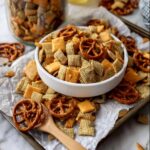 This snack mix pairs beautifully with lighter bites like veggie sticks and hummus or a creamy cheese spread. Consider serving it alongside a chilled glass of lemonade or an ice-cold beer for a snack plate that’s both refreshing and hearty — perfect for casual get-togethers or watching your favorite game.