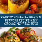 Romanian Stuffed Peppers, known as Ardei Umpluți, are a hearty traditional dish featuring bell peppers filled with a savory mixture of ground pork, rice, and aromatic spices. Slow-simmered in a tangy tomato sauce, these peppers are tender, flavorful, and perfect as a comforting main course, garnished with fresh parsley and optionally served with sour cream and crusty bread.
