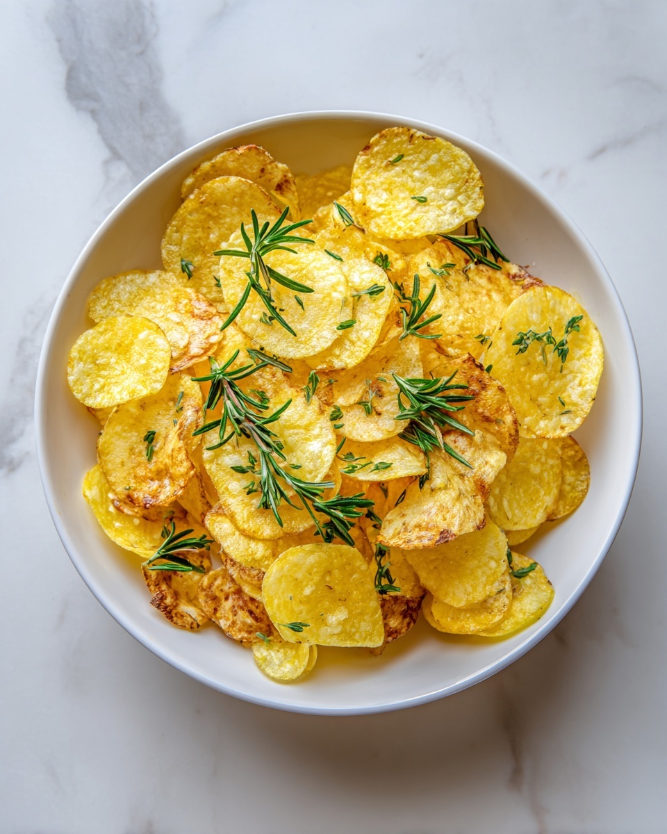 5. Add the Rosemary: During the last 30 seconds of frying the final batch, add a few sprigs of rosemary to the hot oil. Fry them until fragrant, then remove and drain well on paper towels.