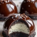 Indulge in these decadent Salted Caramel Chocolate Mousse Domes, featuring layers of crispy textures and rich chocolate mousse with a luscious salted caramel twist. Perfect for special occasions or gourmet dessert lovers, these domes combine crunchy Rice Krispies, silky melted dark chocolate, and a smooth salted caramel filling, elegantly coated in cocoa powder and decorated with chocolate sheets.
