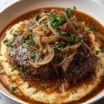 This Savory French Onion Pot Roast is a comforting and flavorful dish featuring a tender chuck roast slowly braised with caramelized onions, garlic, herbs, and a rich beef broth. Perfectly browned and simmered to fork-tender perfection, it’s an ideal main course for family dinners accompanied by mashed potatoes or crusty bread.