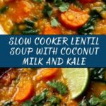 When the lentils are perfectly soft, turn off the slow cooker and stir in the chopped kale (or baby spinach), coconut milk, and freshly squeezed lime juice. Cover again and let the soup rest for about 15 minutes. The residual heat will gently wilt the greens and marry all the flavors together for a luscious finish.