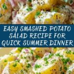 This Smashed Potato Salad is a vibrant and flavorful take on the classic potato salad. Featuring tender baby gold or red potatoes gently smashed to create a rustic texture, it’s combined with tangy dill pickles, fresh dill, celery, capers, and a creamy Dijon-mustard mayonnaise dressing. Quick to prepare and perfect for picnics, barbecues, or as a hearty side dish, this salad balances savory, tangy, and fresh flavors in every bite.