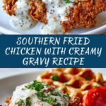 This Southern Fried Chicken with Creamy Gravy recipe features crispy, golden-brown fried chicken marinated in buttermilk for tenderness and flavor, served with a rich, homemade creamy gravy. A classic Southern American comfort food perfect for a hearty main course.