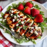 This Strawberry Chicken Salad is a fresh and vibrant summer recipe featuring tender baked chicken breasts paired with juicy strawberries, tangy feta cheese, crunchy toasted almonds, and a flavorful balsamic vinaigrette. It’s a delightful combination of sweet and savory flavors perfect for a light lunch or dinner.