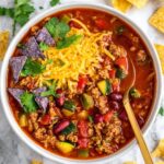 For a cozy family meal, serve the chili in rustic bowls paired with lime wedges on the side. If you’re hosting, offer a chili bar with all the garnishes and sides so everyone can customize their bowl. You can even turn leftovers into chili-stuffed baked potatoes or layered chili nachos for a creative twist.