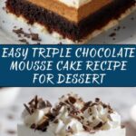 This decadent Triple Chocolate Mousse Cake features a moist semisweet chocolate sponge base topped with layers of silky semisweet chocolate mousse and creamy white chocolate mousse. Perfect for chocolate lovers seeking an elegant dessert that’s rich, airy, and beautifully layered.