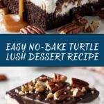 - Serve: Slice into 12 servings and enjoy the rich, creamy, and crunchy layers of the Turtle Lush dessert.
