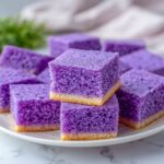 Let your Ube Mochi Cake cool completely on a wire rack before slicing into squares. Cooling is essential; it allows the mochi to set properly and makes cutting easier while preserving that perfect chewy bite.