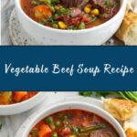 Serve the Vegetable Beef Soup Recipe in individual soup crocks or rustic ceramic bowls for a homey, inviting feel. For a fun twist, hollow out a round loaf of bread and ladle the soup inside for an edible bowl. Garnish with a sprinkle of cheese and fresh herbs to wow your guests visually and tastefully.