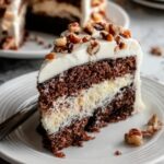 Here comes the exciting part: assembly! Place one cooled cake layer on your serving plate. Gently transfer the cooled cheesecake layer on top of this first cake layer. Then, carefully put the second cake layer on top of the cheesecake. Now, generously frost the entire cake, covering the top and sides with your luscious vanilla buttercream. If you want to add an extra touch of texture and flavor, sprinkle shredded sweetened coconut and chopped pecans over the frosting—it’s a classic pairing that elevates this cake to something truly special. Chill the cake for at least one hour before serving to let the flavors settle beautifully.